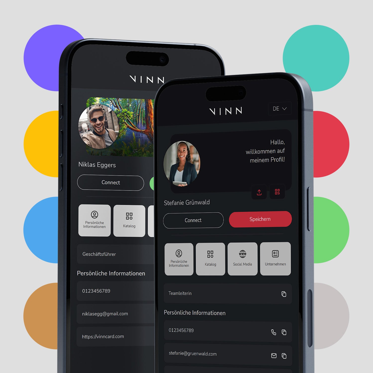 Ein VINN Card ist eine physische und gleichzeitig digitale Visitenkarte, die eine neue Art von Kontaktaustausch darstellt. Dieser ist effizienter, nachhaltiger und billiger.